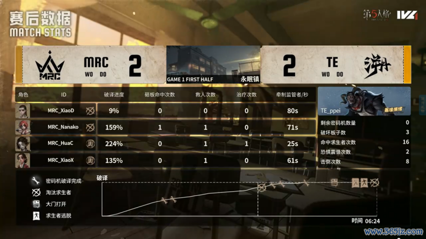 第一局比赛上半轮:MRC求生者对阵TE监管者